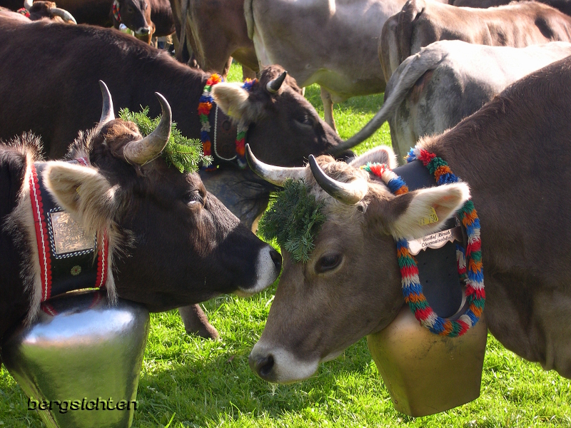 Zum Abtrieb werden den Kühen riesige Kuhglocken, die "Schellen" umgehängt. Diese werden nur beim Almabtrieb verwendet.