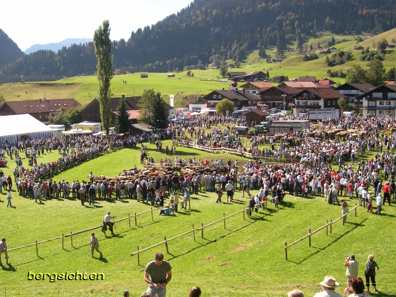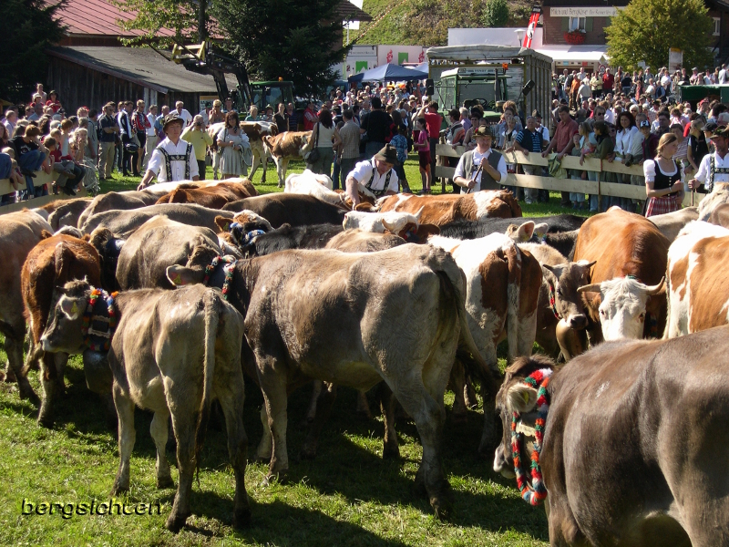 Der Viehscheid in Obermaiselstein ist recht gemütlich und überschaubar, obwohl dieser kein kleiner Viehscheid ist. Von erhöhter Position lässt sich das Treiben gut beobachten.